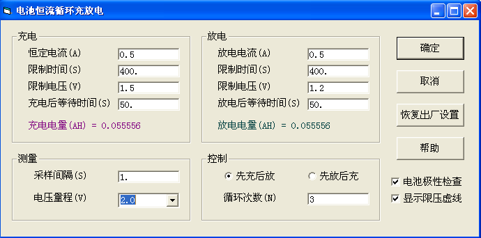 4.不論是充電或放電,電壓量程都應(yīng)大于限制電壓。