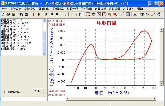 不銹鋼絲(在硫酸加氯化鈉底液里)的環(huán)形掃描曲線